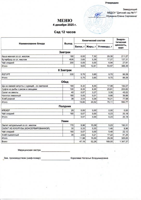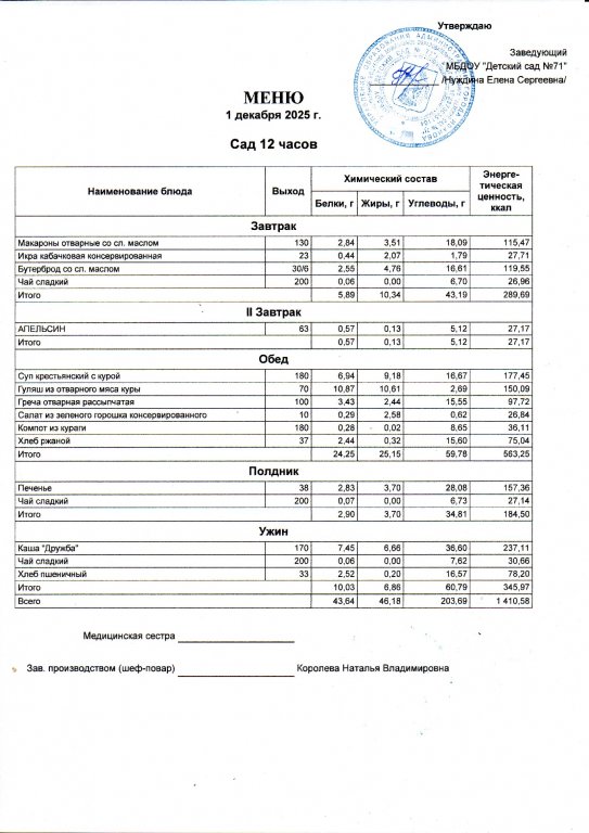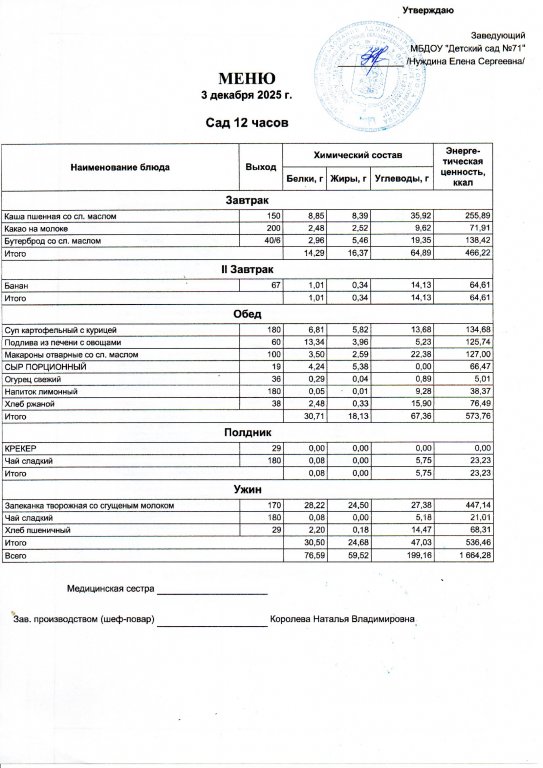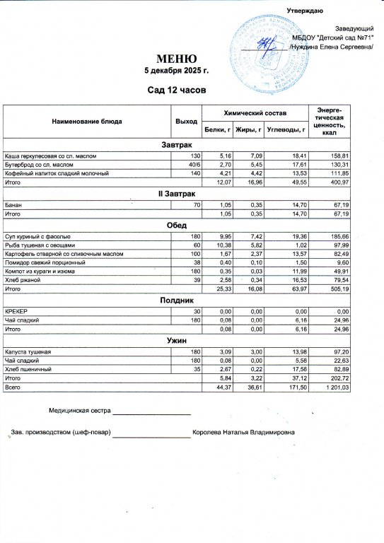 Положение по организации питания детей в МБДОУ "Детский сад № 71"