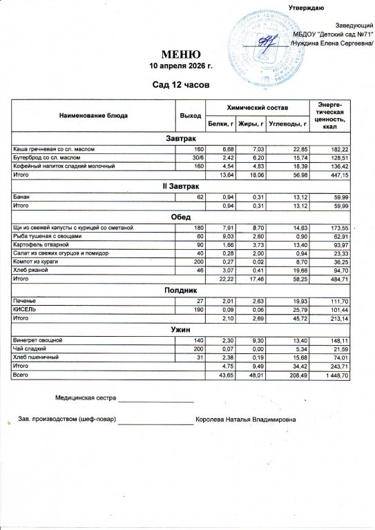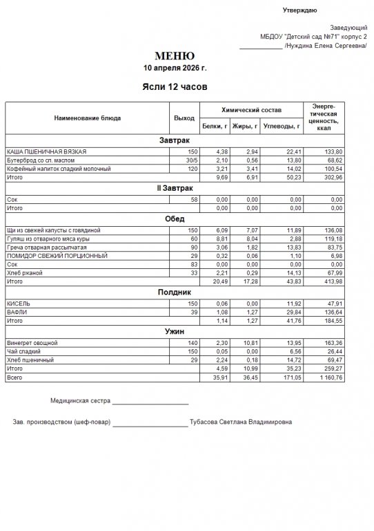 Меню на 10.04.