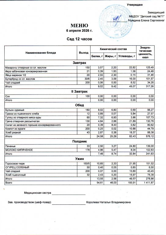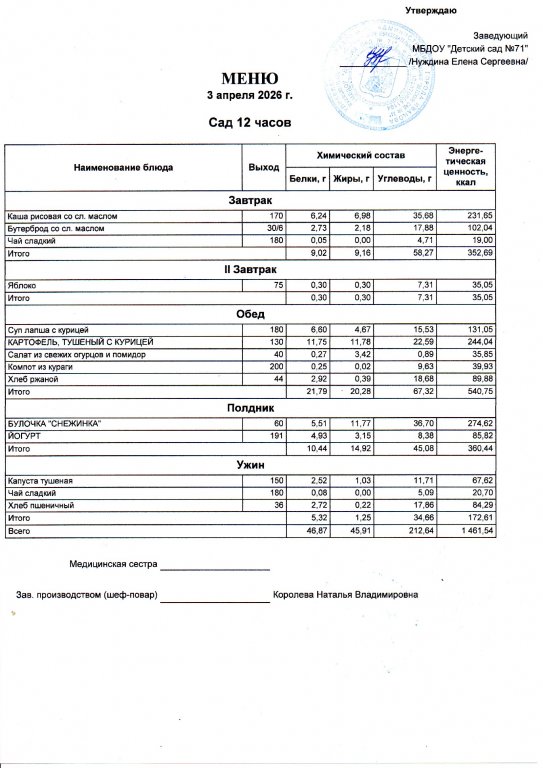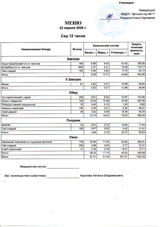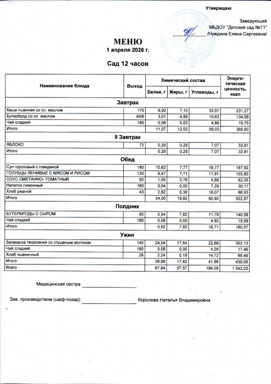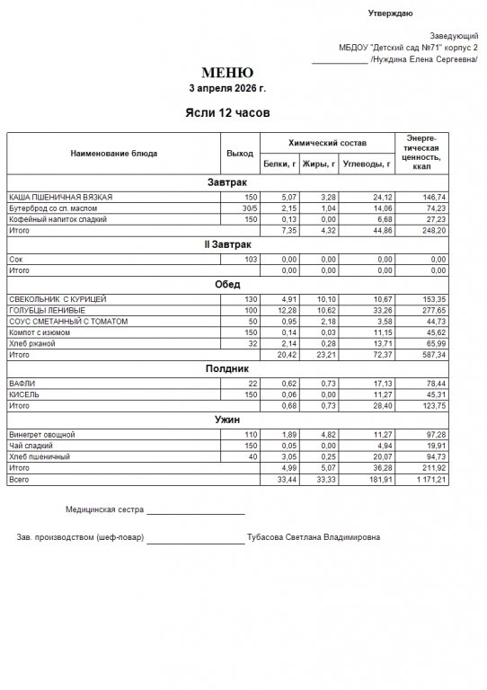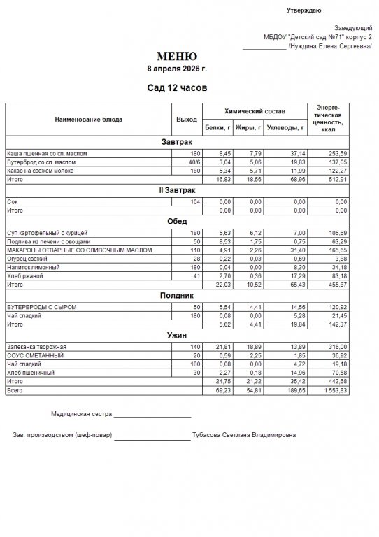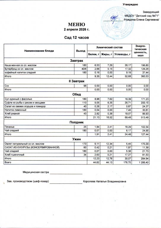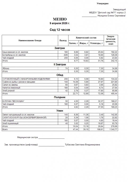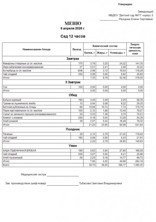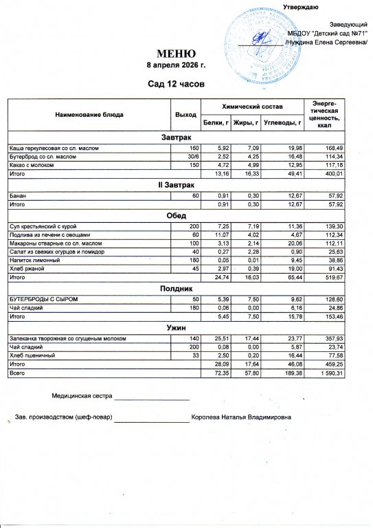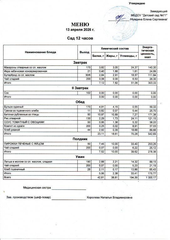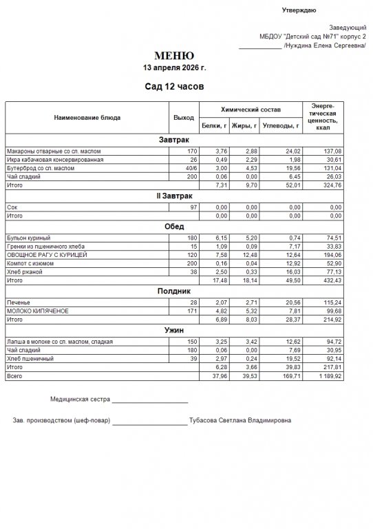 Меню на 13.04.
