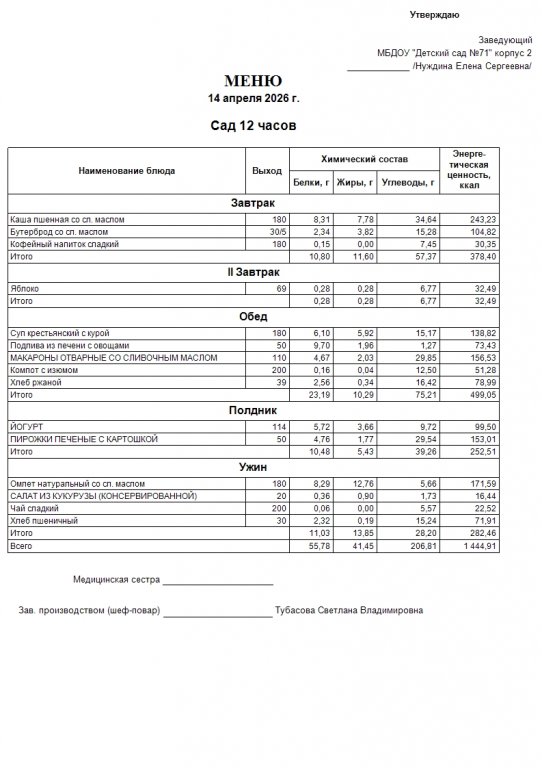 Меню на 14.04.