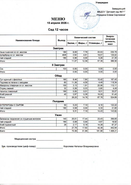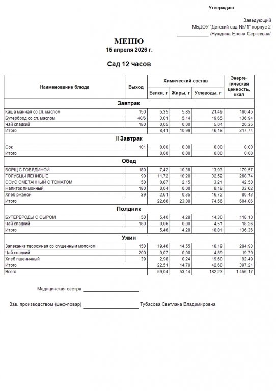 Меню на 15.04.