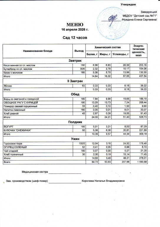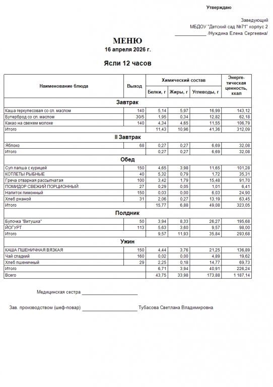 Меню на 16.04.