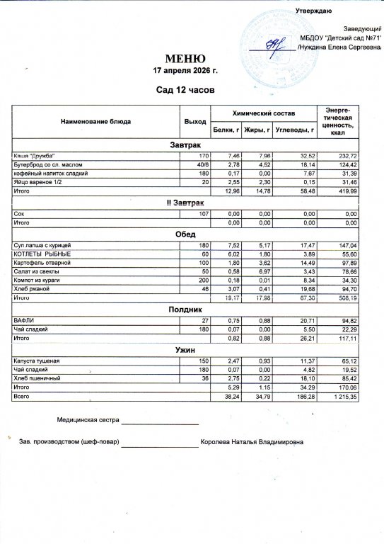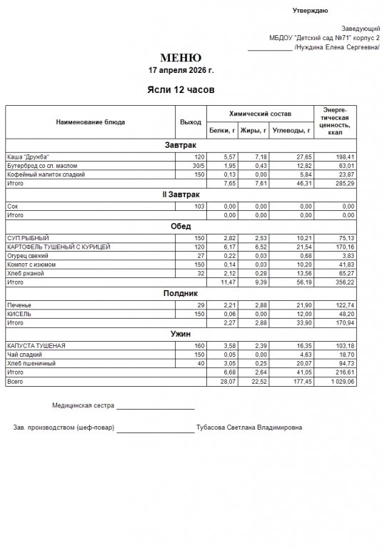 Меню на 17.04.