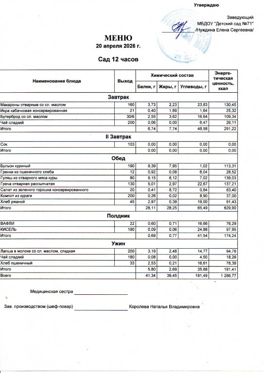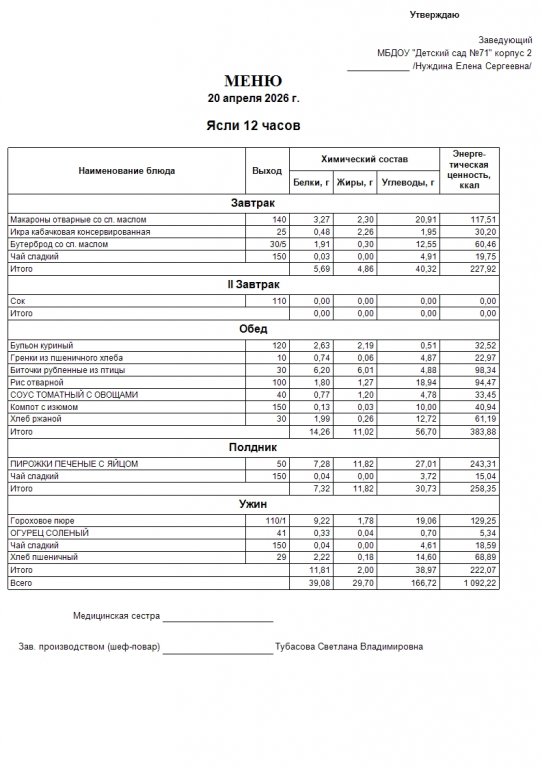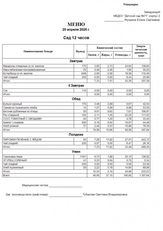 Меню на 20.04.