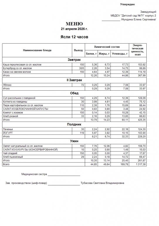 Меню на 21.04.