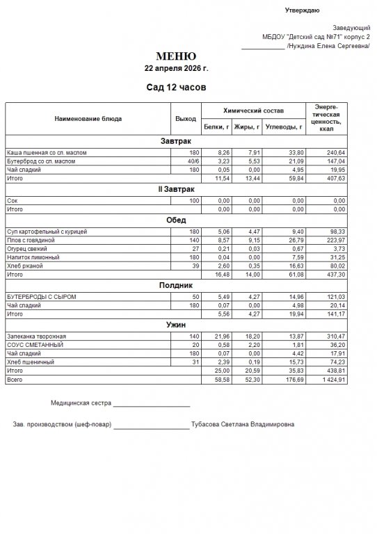 Меню на 24.04.