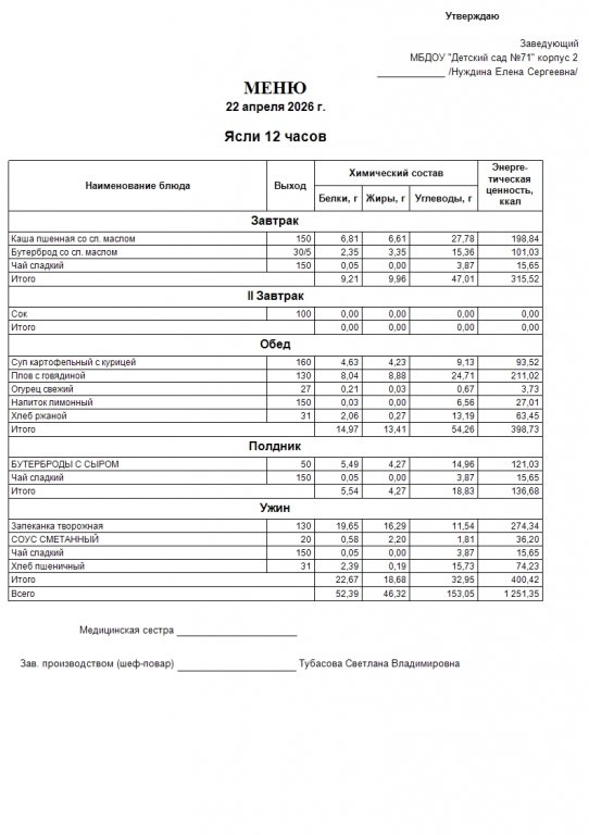 Меню на 22.04.