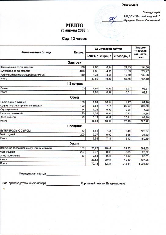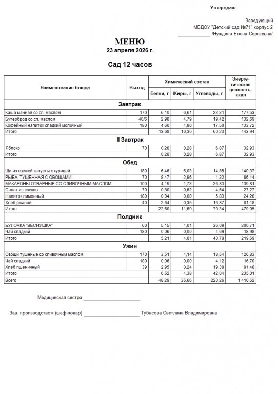 Меню на 23.04.