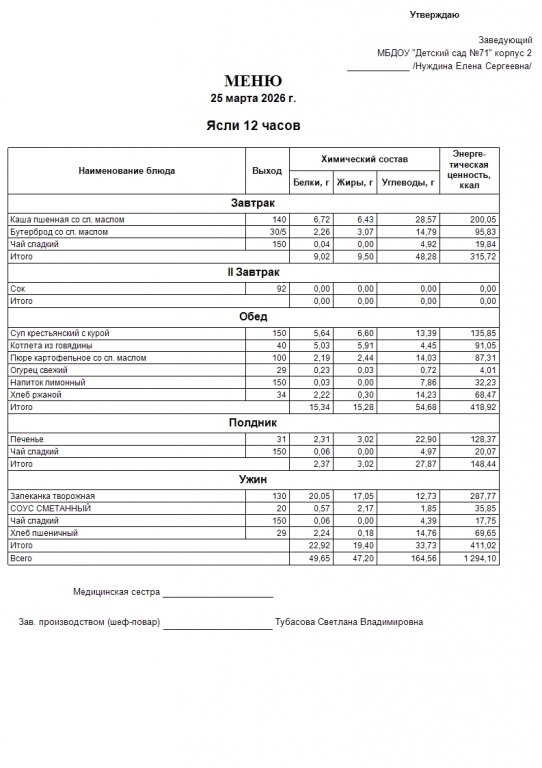 Меню на 25.03.26