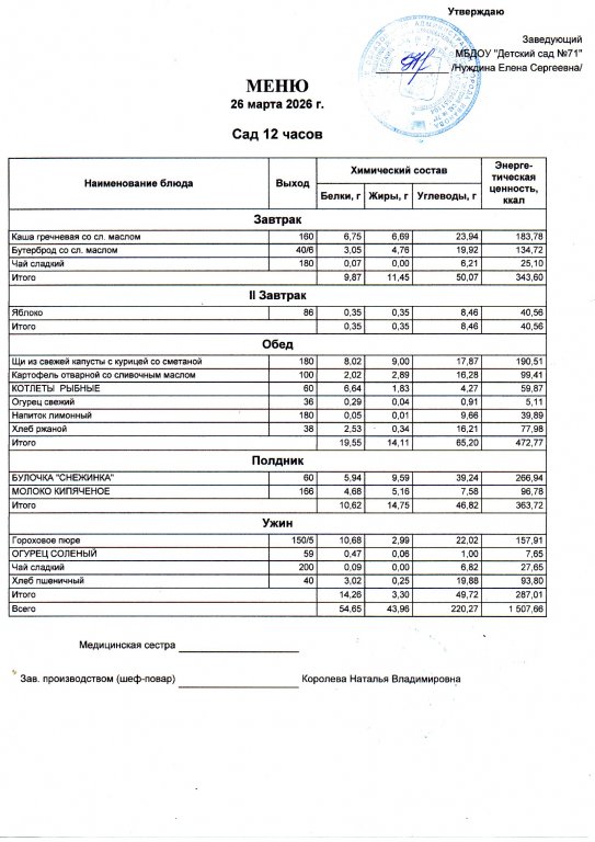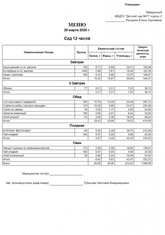 Меню на 26.03.