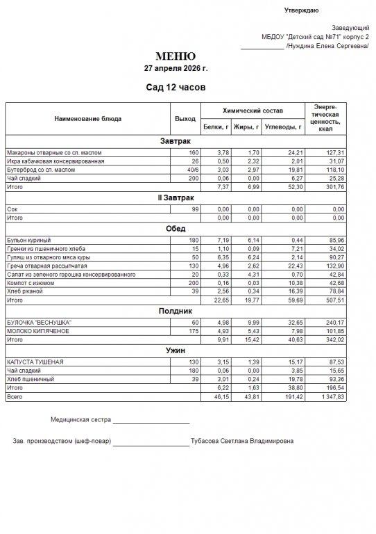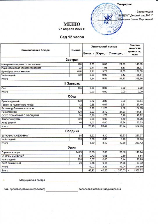 Меню на 27.04.