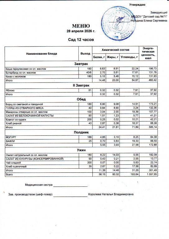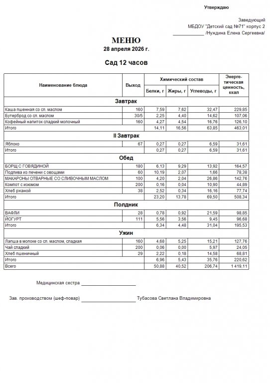 Меню на 28.04.