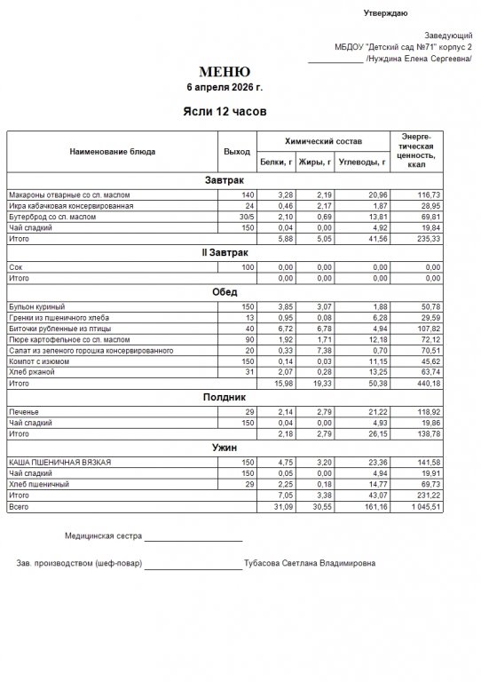 Меню на 6.04.