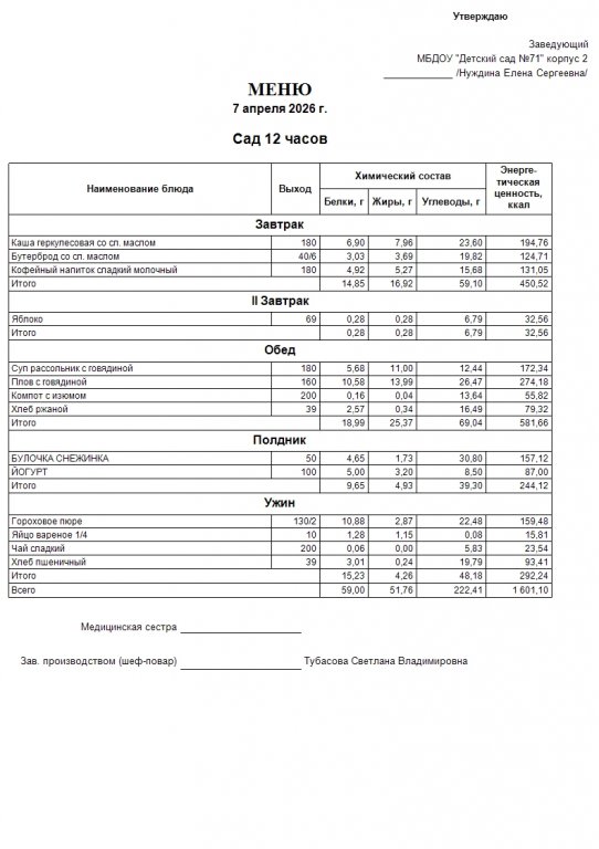 Меню на 7.04.