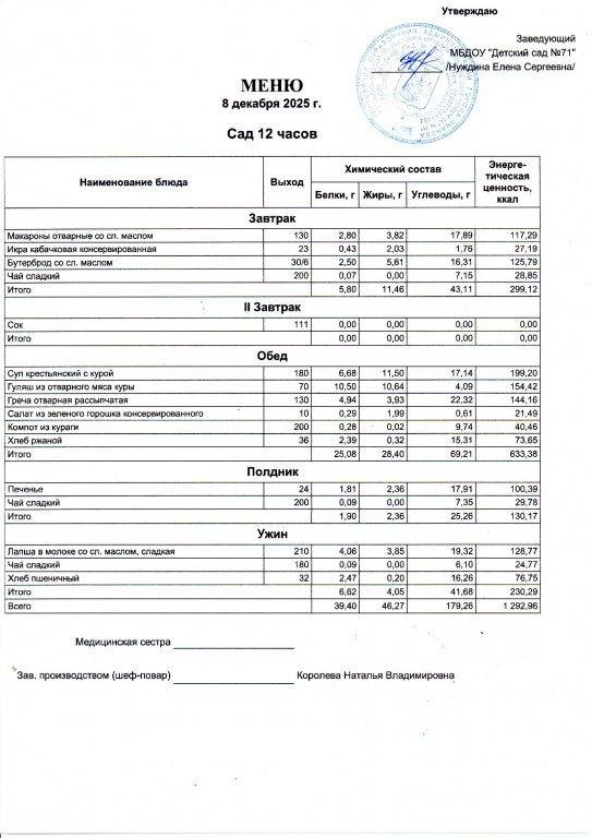 С 01.01.2025г. доставку продуктов питания в МБДОУ "Детский сад № 71" осуществляют следующие ПОСТАВЩИКИ