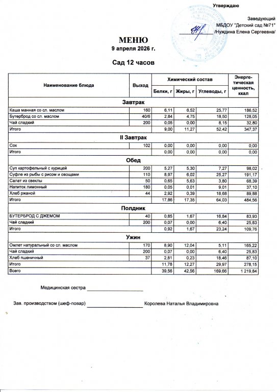 Меню на 9.04.
