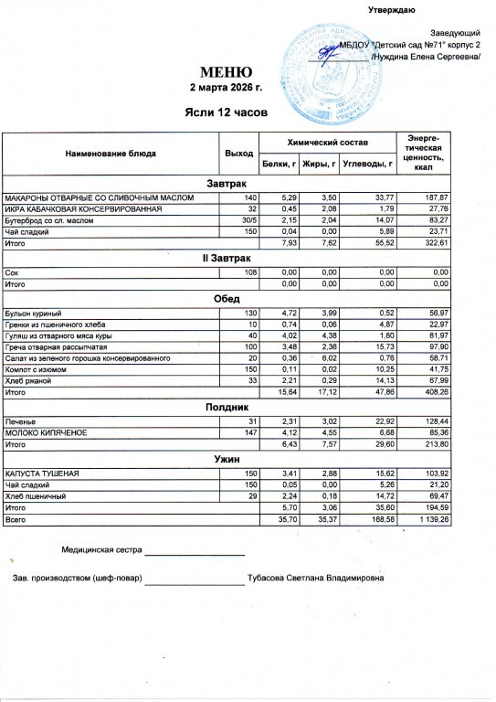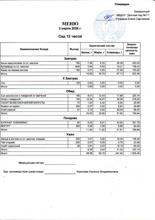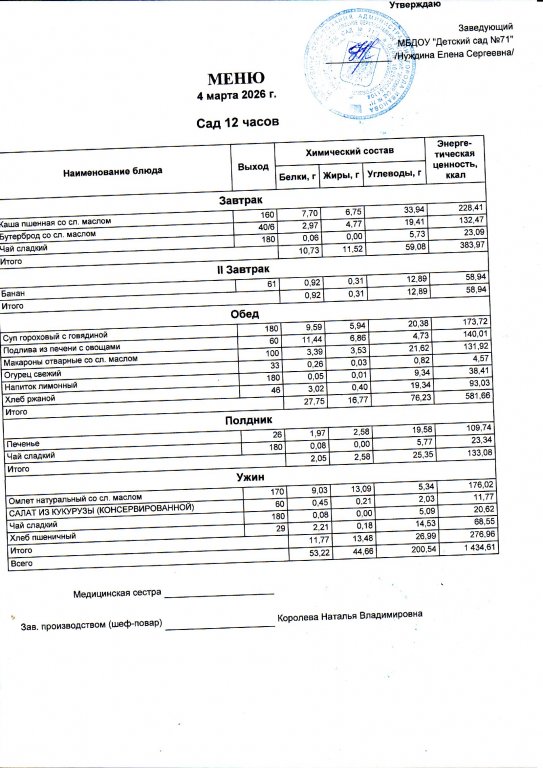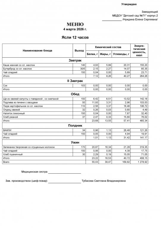 Меню на 4.03.26