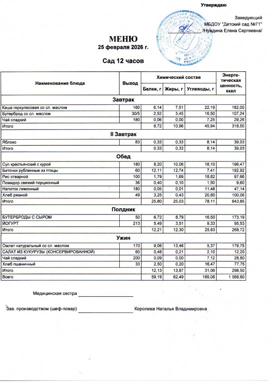 Меню на 25.02.26 2 корпус сад