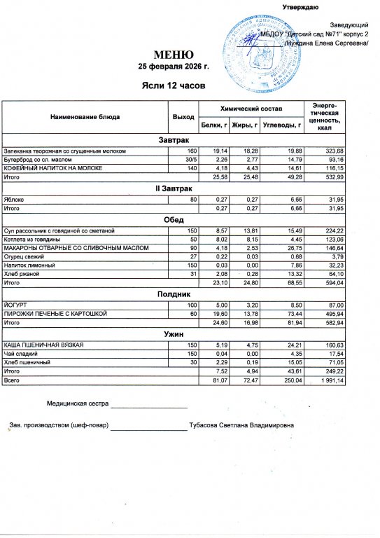 Меню на 25.02.26 2корпус ясли