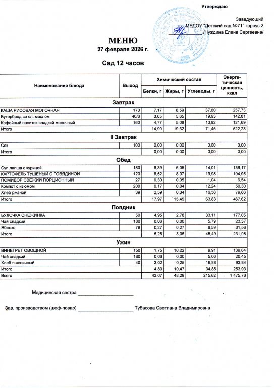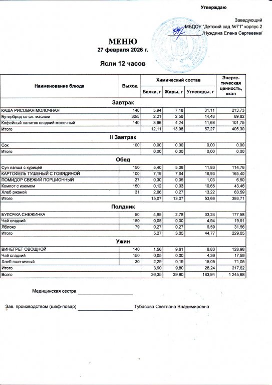 Меню на 27.02.26